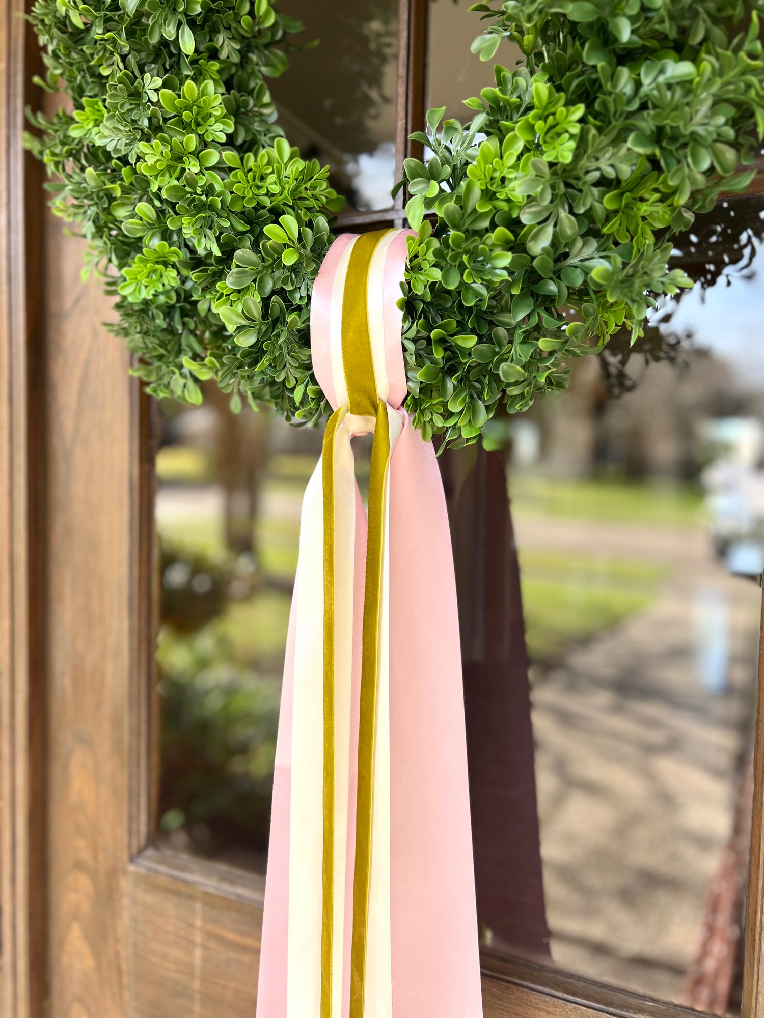 Our team visits your home four times per year to refresh your wreath with a beautifully tied ribbon from your choice of Classic, Signature, or Premier collections. Pricing is customized by ribbon tier, and number of doors — so every season feels perfectly tied.