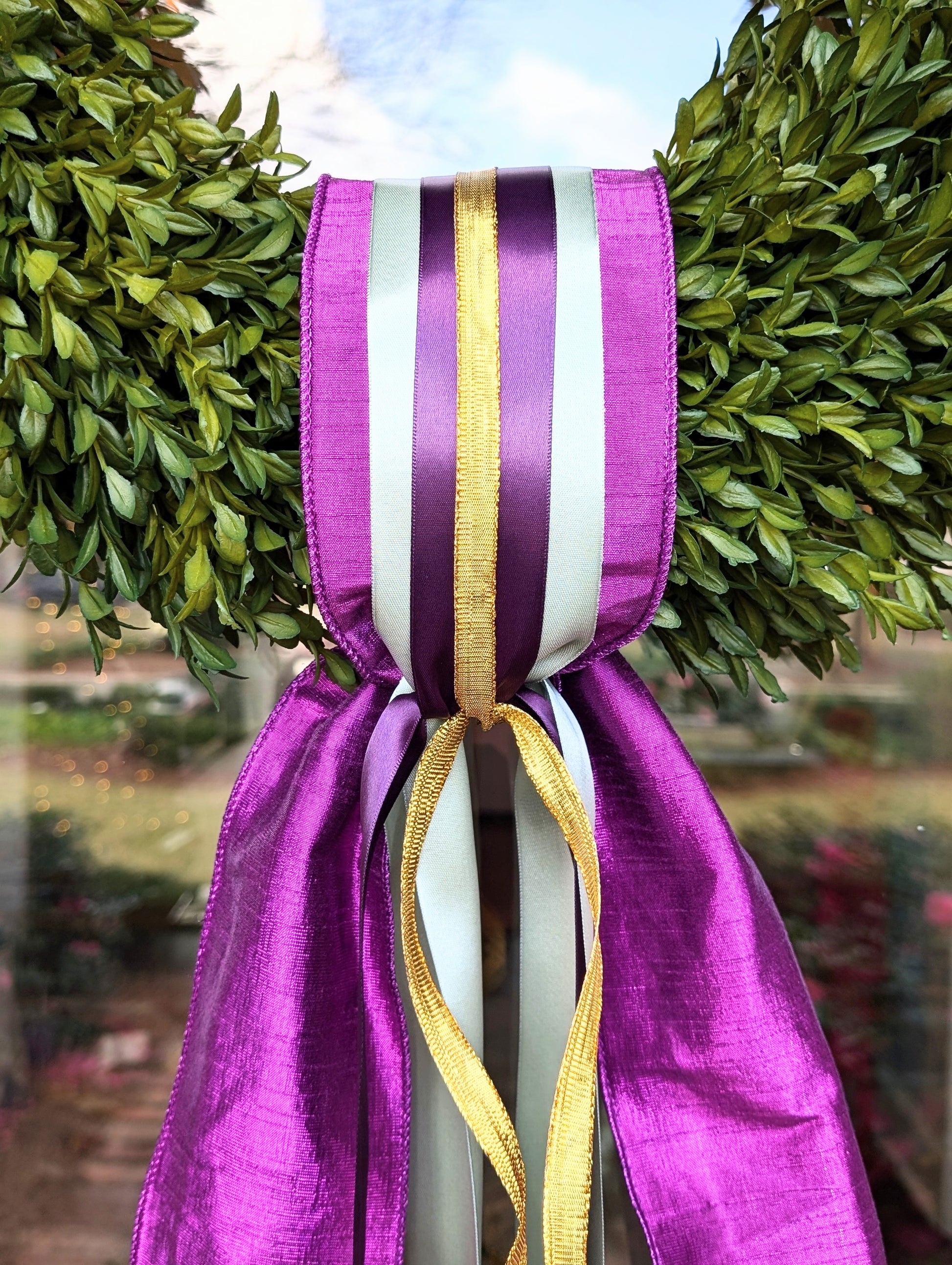 Turn your front door into a celebration with our Mardi Gras Ribbon Sets—where Carnival tradition meets elevated design. Rich purples, vibrant greens, and radiant golds come together in premium textures, metallic accents, and festive patterns inspired by the spirit of Mardi Gras.